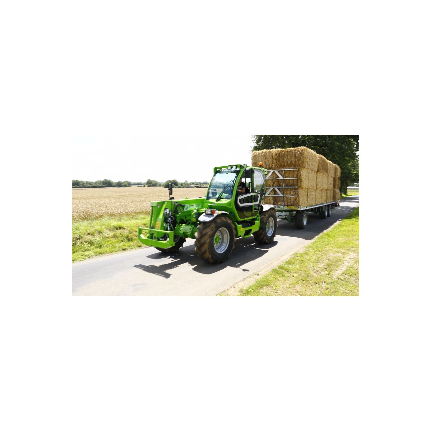 El compromiso de Merlo es hacer que sus manipuladores telescópicos sean cada vez más polivalentes, y la nueva gama Turbofarmer lleva este concepto al límite puesto que, además de los usos tradicionales para manutención, logística y mantenimiento típicos de este tipo de máquinas, permite su uso también para el arrastre gracias a su gancho homologado para 21 toneladas y a su sistema de freno de remolque neumático e hidráulico. Para trabajos con accesorios que necesitan TdF, las versiones de 122 y 156 CV disponen de TdF mecánica para permitir labores con accesorios remolcados como mezcladoras unifeed, rotoempacadoras, sembradoras o pulverizadores.