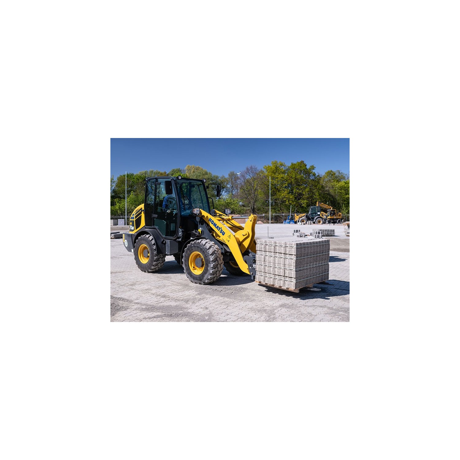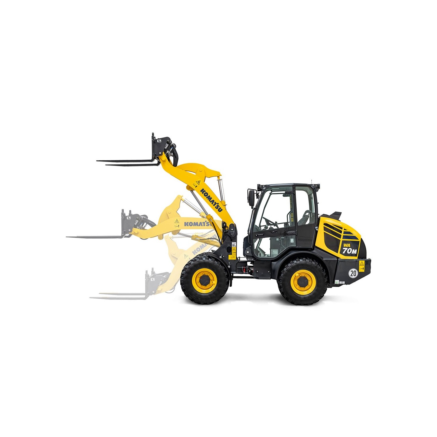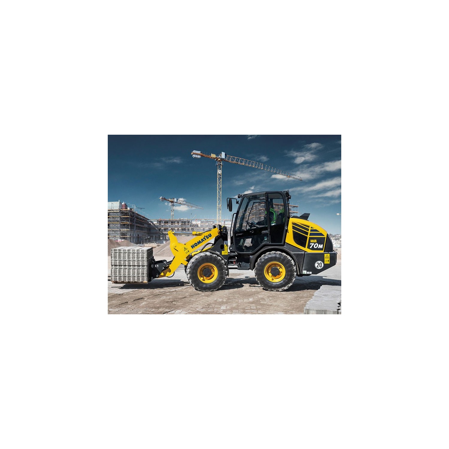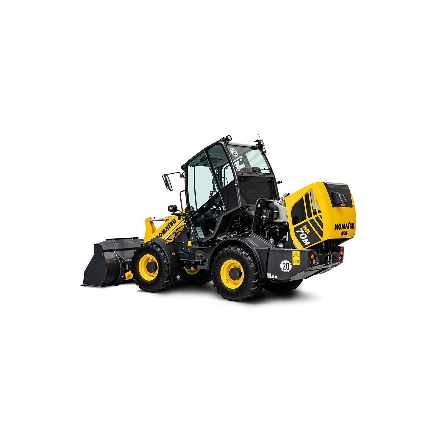 La WA70M-8 tiene un peso operativo de 5.000 kg. Su motor Komatsu SAA4D94LE-3 de la fase V de la UE es también más potente con 46kW (62HP) netos. Optimizado para aplicaciones de construcción duras, ofrece un par elevado incluso a bajas revoluciones. Una transmisión hidrostática totalmente automática envía la potencia a las cuatro ruedas.