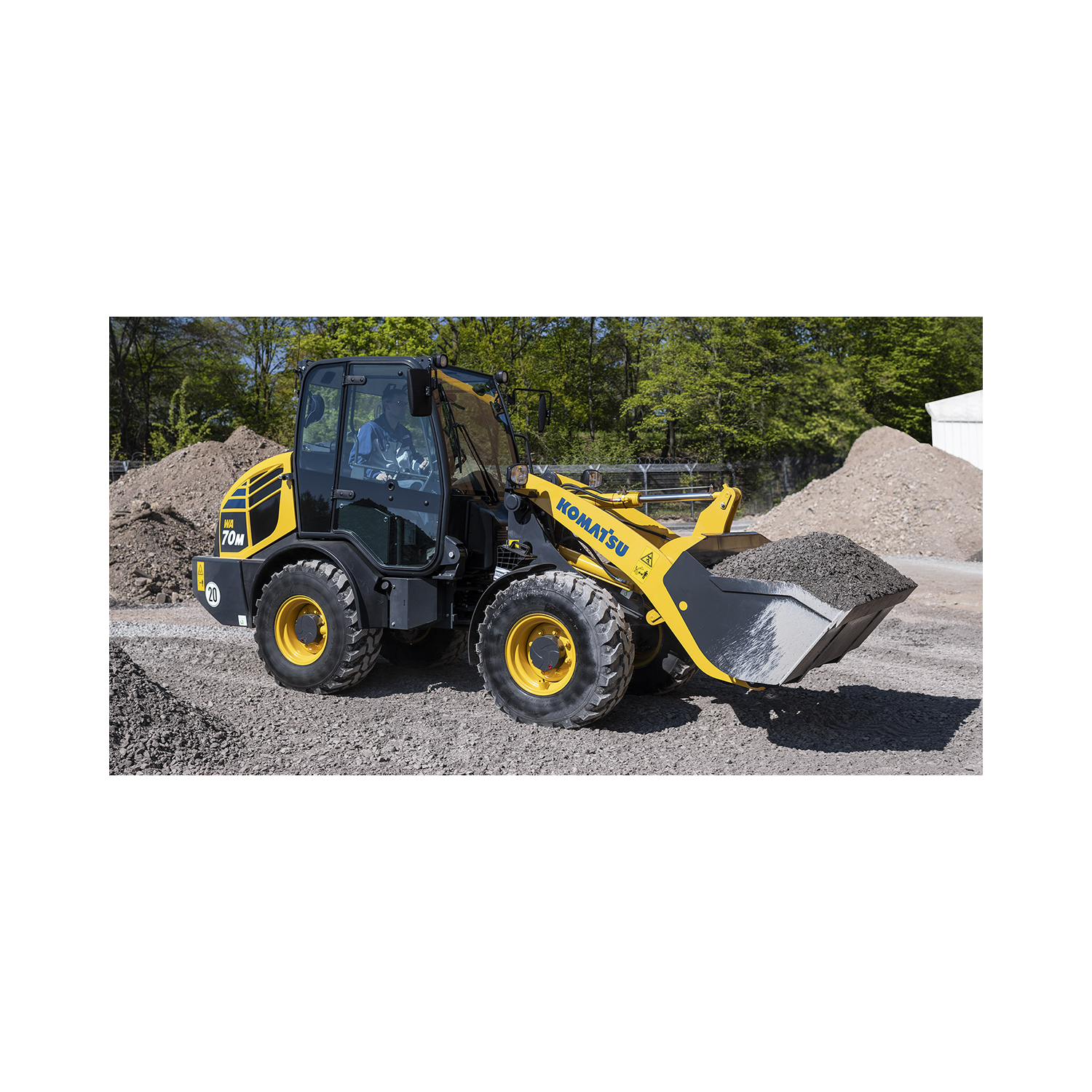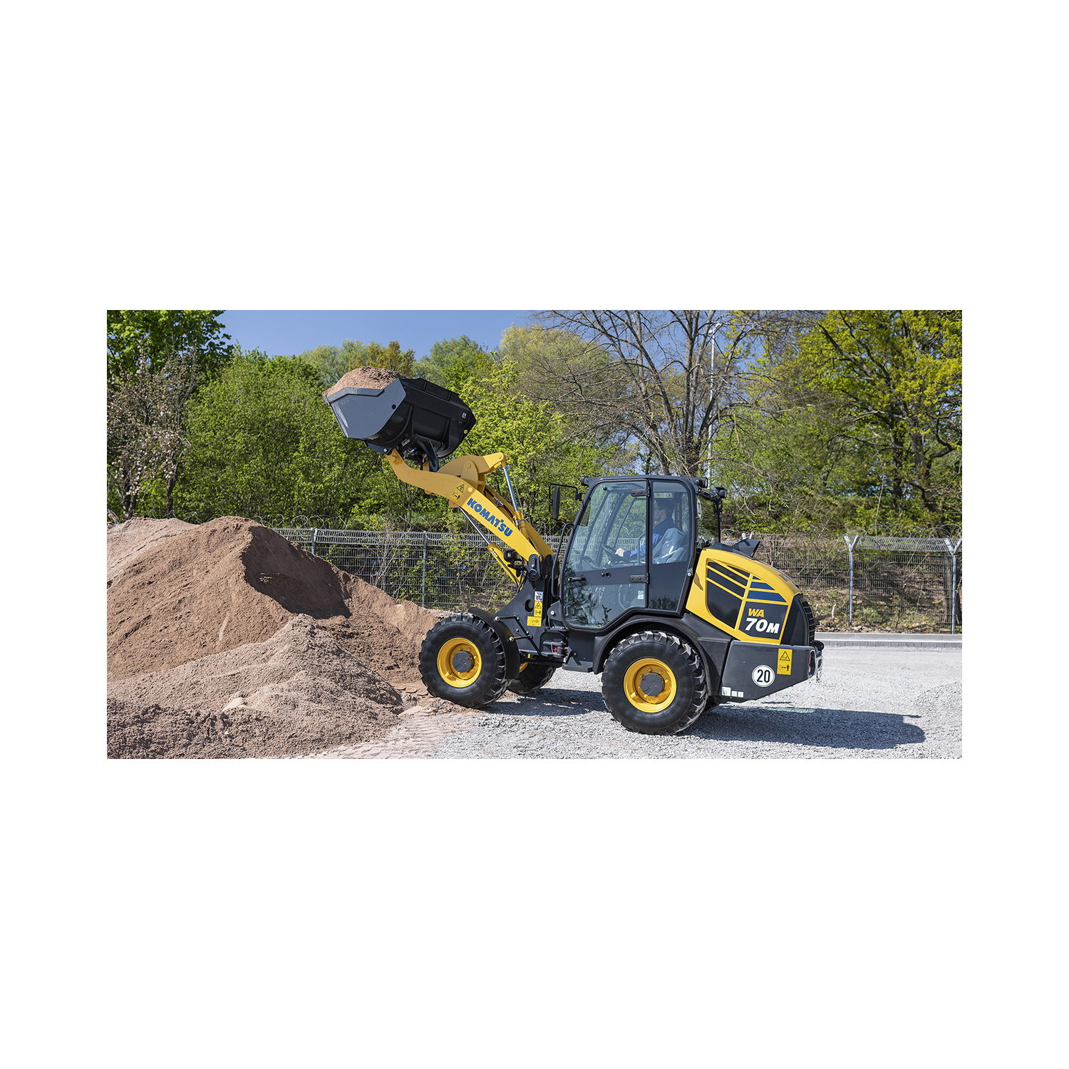 La cargadora compacta de ruedas WA70M-8 de Komatsu ofrece un confort de primera clase para el operador, una visibilidad óptima, niveles de seguridad extraordinarios, una interfaz ergonómica, un manejo sin esfuerzo y un estilo contemporáneo y audaz para una presencia visual fuerte y distintiva.