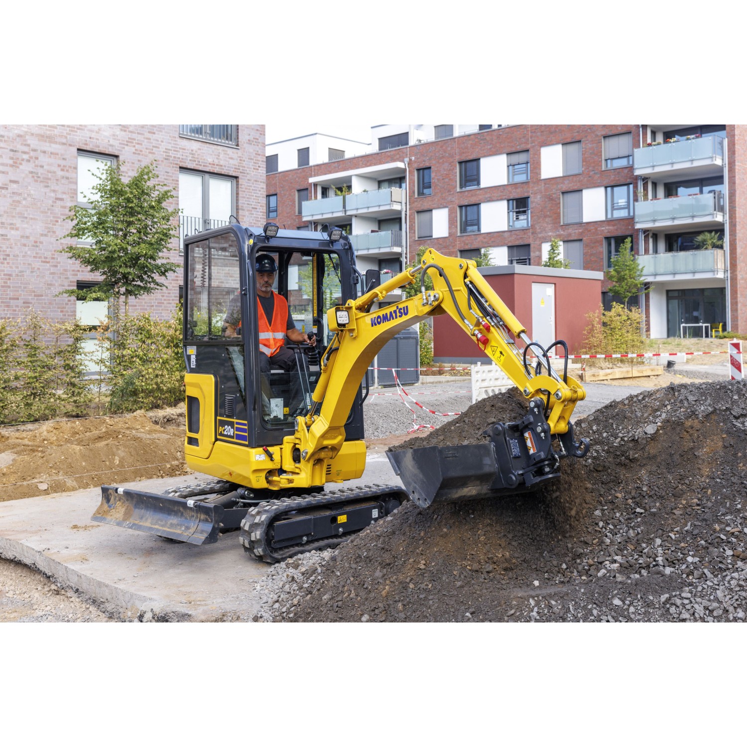La miniexcavadora Komatsu PC20R-5 se diseñó específicamente pensando en los clientes más exigentes. Proponen una mayor capacidad de control y seguridad, un fantástico confort para el operador siendo su mantenimiento más sencillo. La máxima precisión y capacidad de control la hace perfecta para todos los usuarios, desde los principiantes hasta los más experimentados.