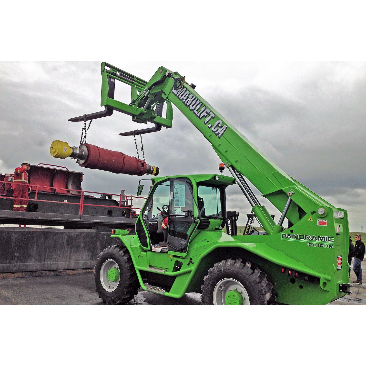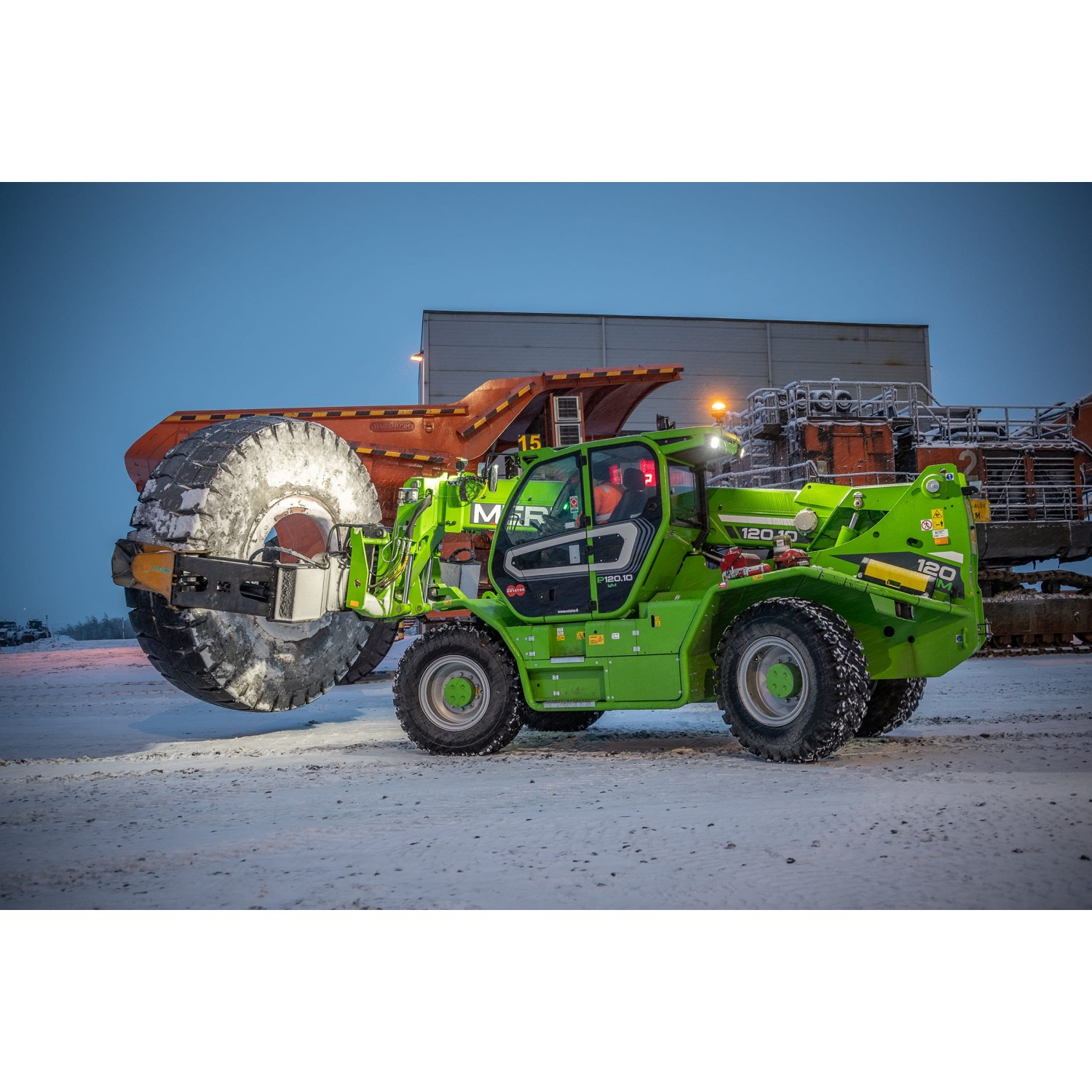 El Merlo P120.10 forma parte de la familia "Alta Capacidad". Ofrece capacidad de altura de 9,8 metros y capacidad máxima de 12000 kg.