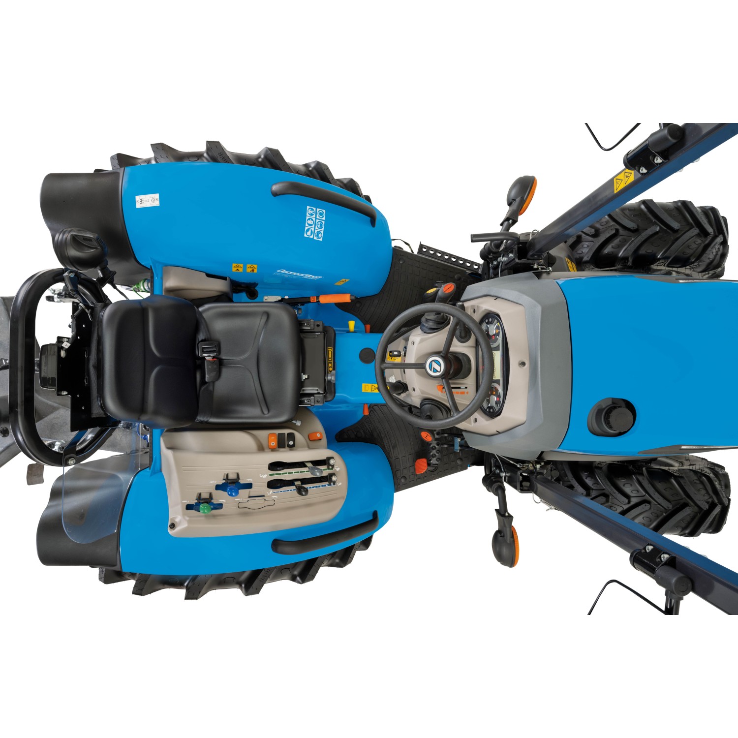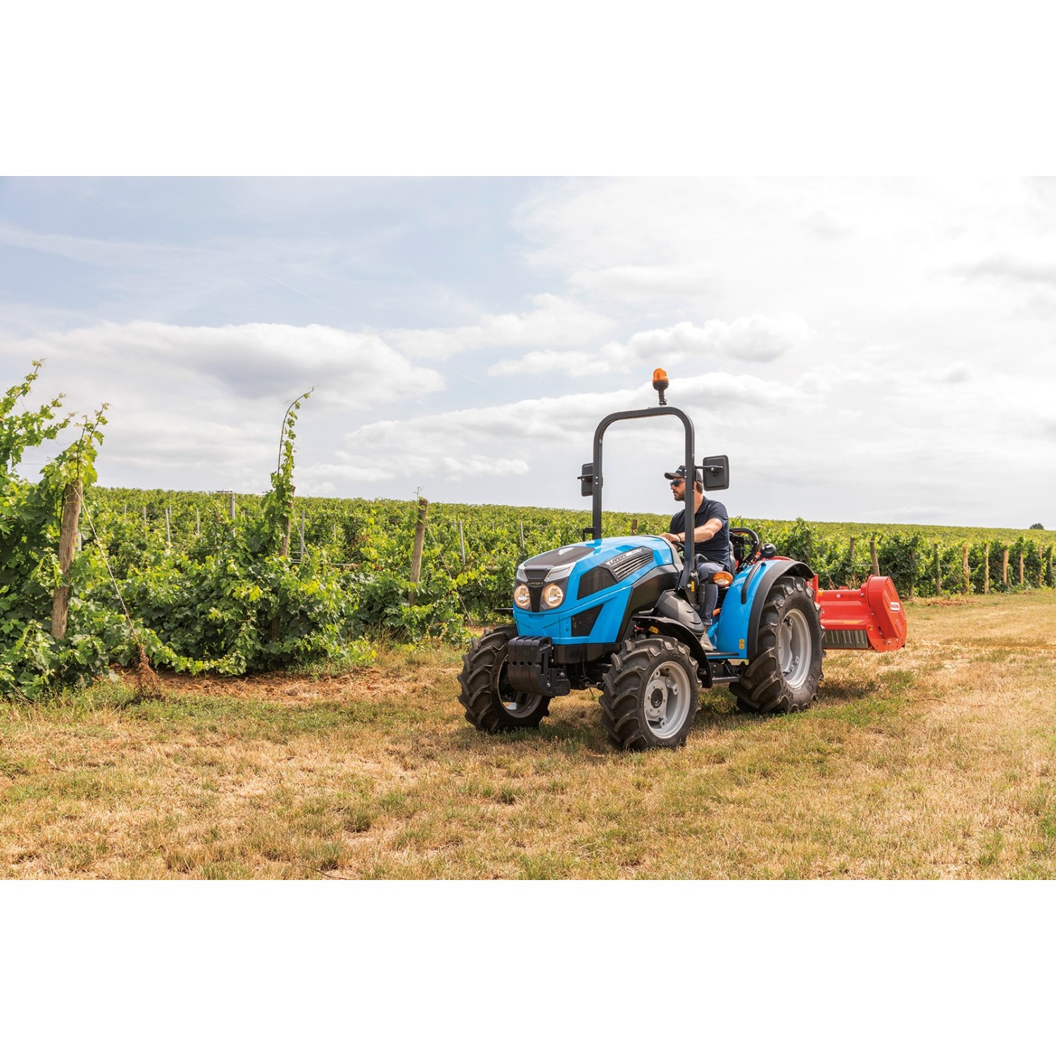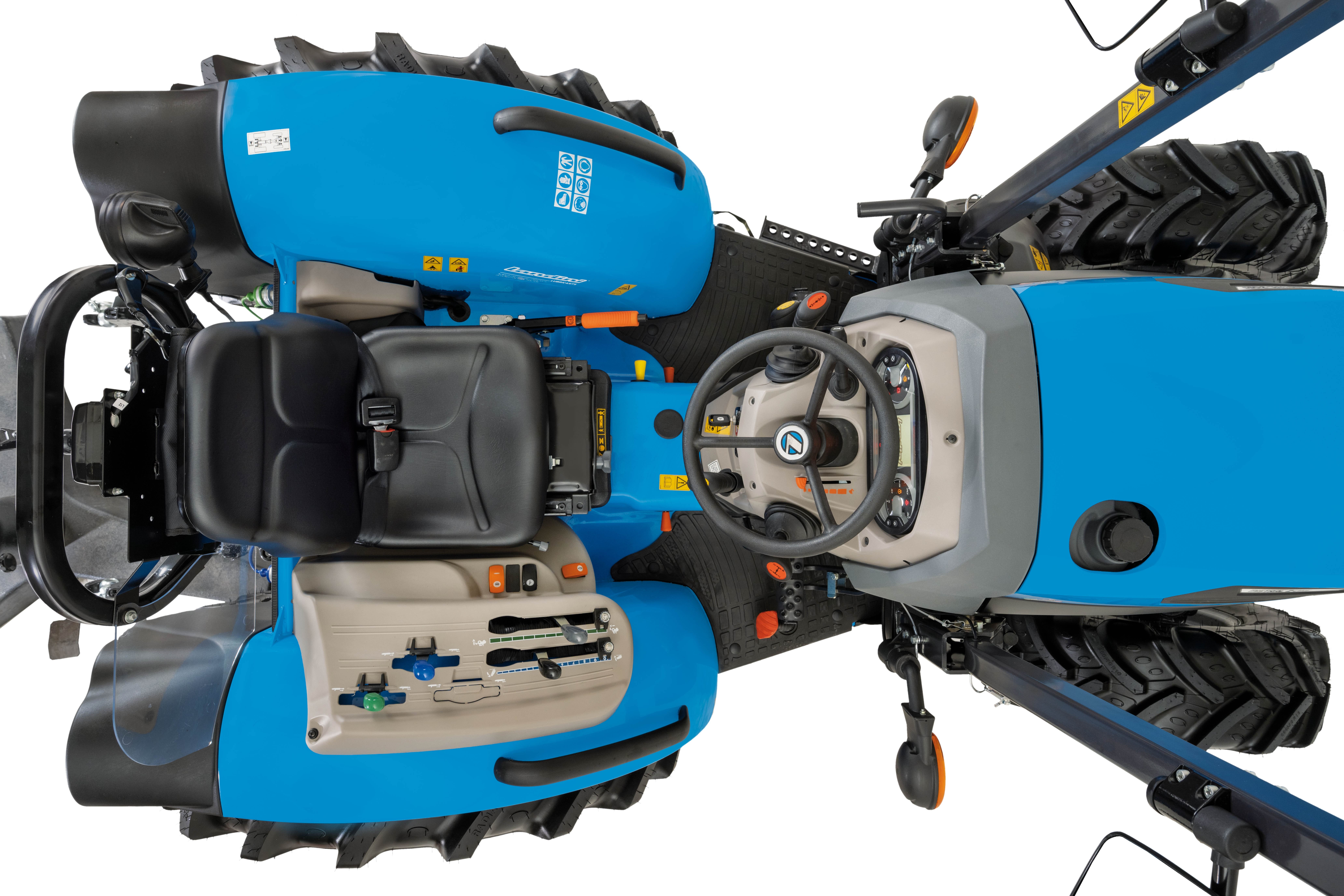 La nueva gama evoluciona en gran medida en la motorización, pasando del Yanmar Tier 3 al Kohler de emisiones Stage V. Un paso que ha sido posible gracias a las capacidades de diseño de Argo Tractors, que ha sabido mantener inalterada la altura del capó desde el suelo, adoptando un sistema de tratamiento de los gases de escape en el lado del capó, lo que garantiza al operador una visibilidad perfecta. Esta solución representa una indiscutible ventaja competitiva para Landini Mistral2, lo que adapta este tractor no solo a aplicaciones típicas de la agricultura especializada, sino también de trabajos municipales, como cortar el césped o los mantenimientos periódicos de las zonas verdes.Landini Mistral2 mantiene la doble configuración Standard, disponible en las versiones con plataforma o cabina y GE (Ground Effect) solo en versión plataforma, que, mediante un ajuste «bajo», que se obtiene gracias a reductores traseros y ejes delanteros especiales, reduce aún más la altura total desde el suelo de capó y guardabarros, de manera que resulta perfecto para trabajos bajo cubierta o toldos. Disponible en las versiones con plataforma o cabina La cabina FOPS, de diseño moderno y funcional, está montada sobre silent blocks que la aíslan acústicamente y de las vibraciones. El confort aumenta gracias a las opciones de aire acondicionado, el parabrisas delantero abatible y la radio. Los mandos son ergonómicos y tienen una posición intuitiva para el operador. Además, la estructura de 4 postes ofrece una excelente visibilidad.