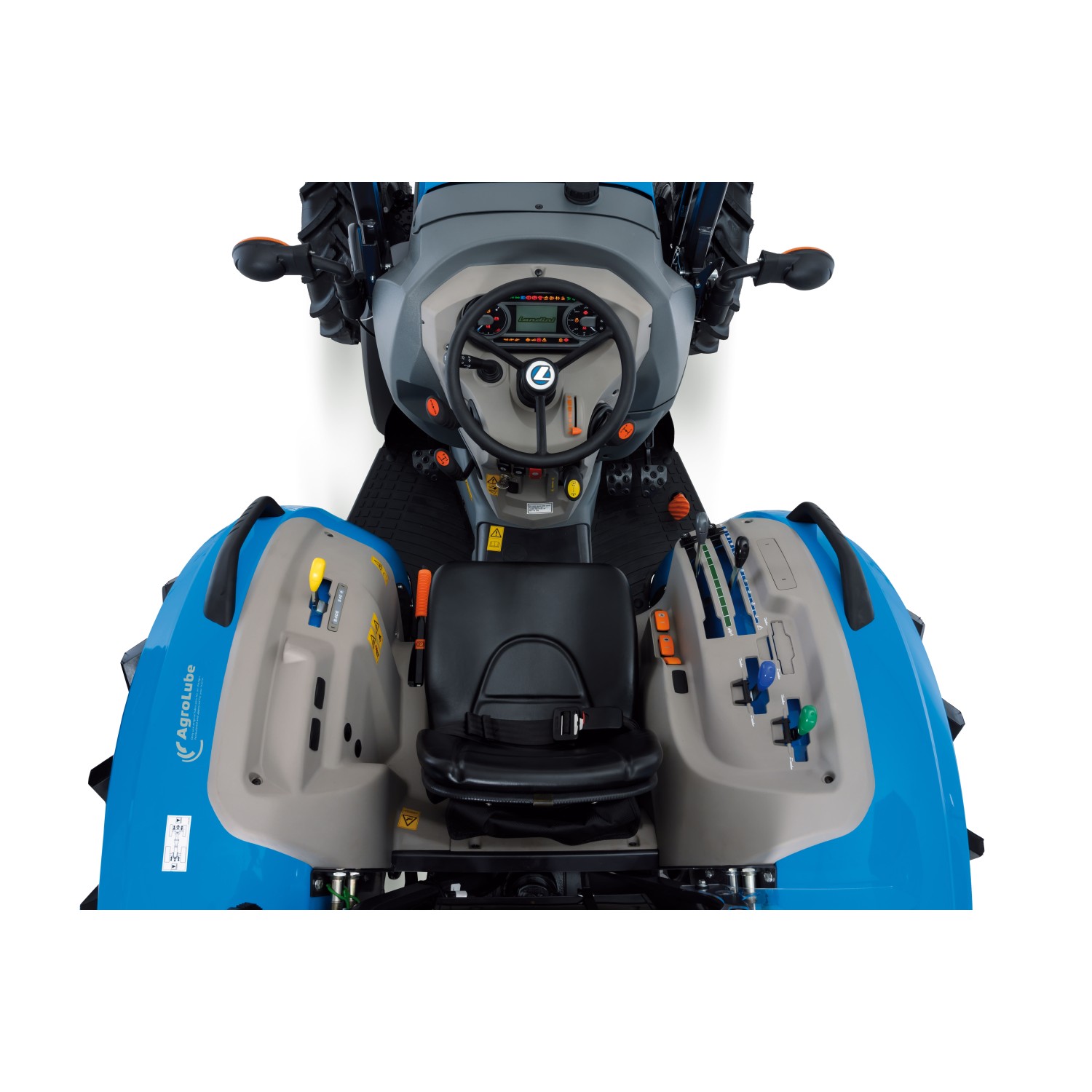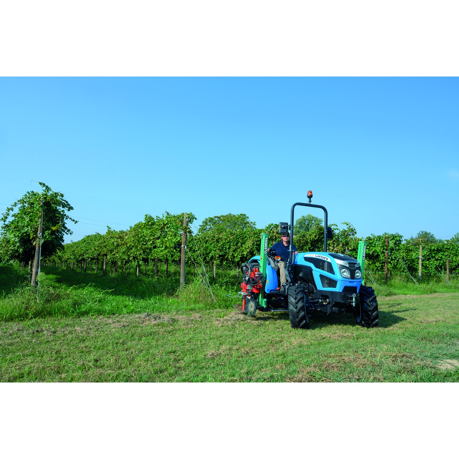 La Serie REX3 F-GE es la gama de tractores especializados para viñedos y frutales con el nuevo motor Stage V. Se caracteriza por unas soluciones tecnológicas innovadoras y por un renovado estilo del capó, una remodelación que ha permitido al especializado Landini ser candidato al prestigioso premio Tractor of the Year 2021 en la categoría «Best of Specialized». Sin embargo, la ventaja competitiva más evidente que tiene esta Serie es la versatilidad. De hecho, la gama se adapta a múltiples procesos de cultivo y permite utilizar varios tipos de equipos, incluidos los delanteros, gracias a la posibilidad de equipar la máquina con un elevador delantero con una capacidad máxima de 1000 kg. En cambio, la geometría del bastidor debajo de la cabina ha sido estudiada específicamente para la instalación ventral.