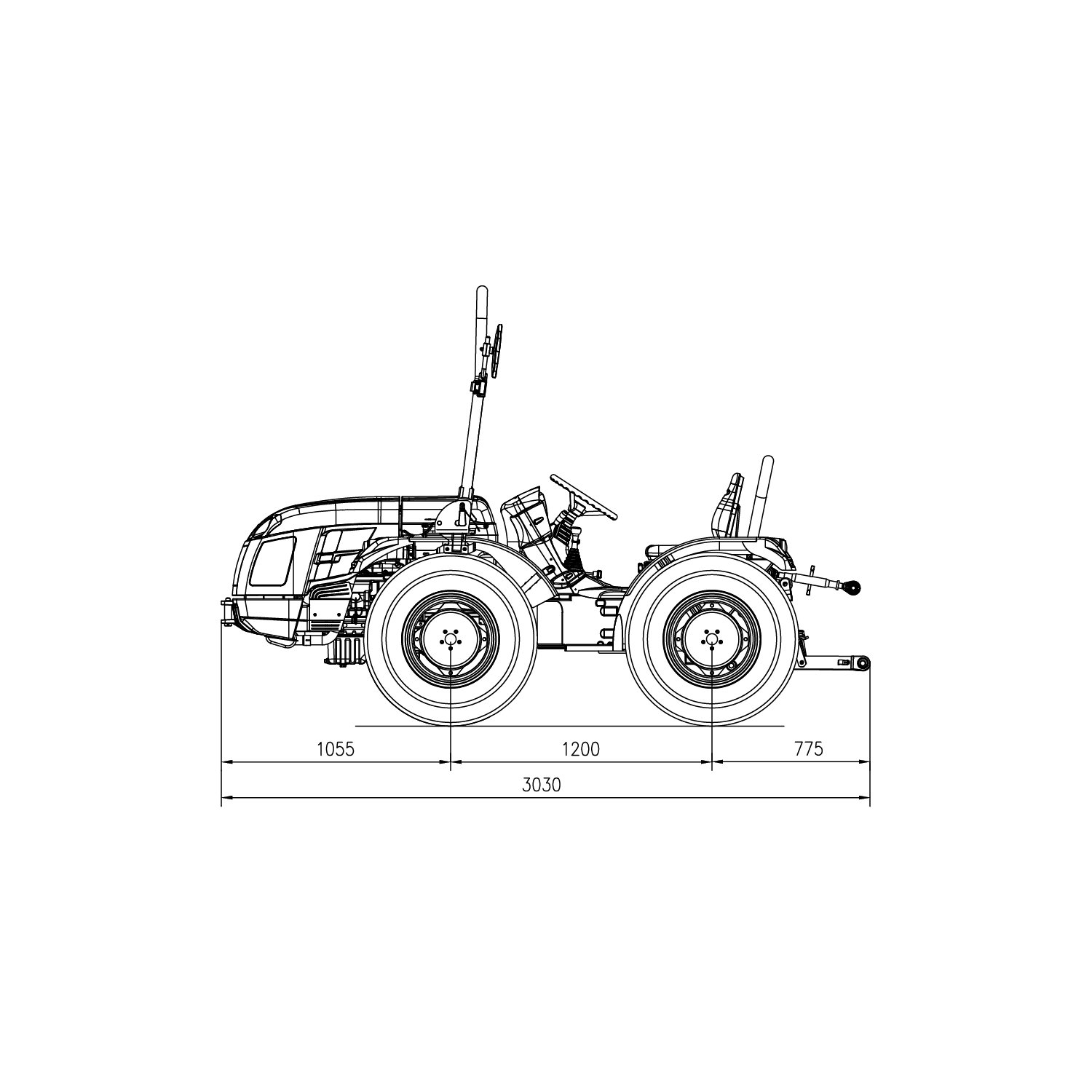 Dimensiones de los tractores Cromo 35 RS con arco de protección (mm)
