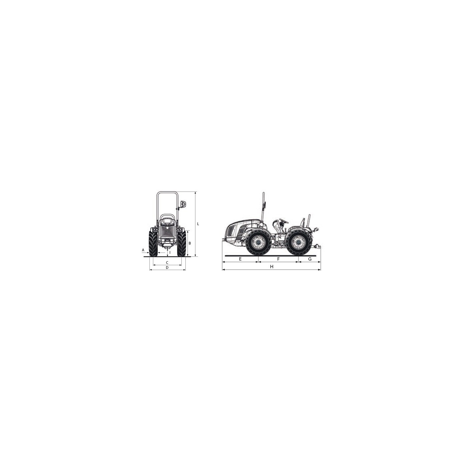 250/80R18 llanta regulable 11.5/80-15.3 llanta fija 280/70R18 llanta regulable 320/65R18 llanta regulable 250/85R20 llanta regulable 300/70R20 llanta regulable A anchura neumático 240 290 282 320 245 286 B altura neumático 879 888 849 873 940 942 C ancho de vía min-max 898 / 1112 948 / 972 1022 / 1108 1022 / 1112 882 / 1230 996 / 1260 D anchura min-max 1138 / 1352 1238 / 1262 1304 / 1394 1342 / 1432 1127 / 1475 1282 / 1546 320/70R20 llanta regulable 340/65R20 llanta regulable 31x15.50-15 XTC llanta fija 31x15.50-15 STG llanta fija 33X12.50-15 T413 llanta fija 13.6-16 Garden llanta fija A anchura neumático 316 343 368 394 325 391 B altura neumático 975 958 800 800 843 968 C ancho de vía min-max 996 / 1260 996 / 1260 1016 1016 959/965 1240 D anchura min-max 1312 / 1576 1339 / 1603 1384 1410 1284/1290 1631 Dimensiones de los tractores Vega K90 AR (mm) E F G H I min-max Vega K90 AR 1348 1495 882 3725 161 / 271 L min-max M min-max N min-max Vega K90 AR 2254 / 2364 2070/2180 2139 / 2249 Pesos de los tractores Vega K90 AR (kg) Con arco de protección Con cabina Vega K90 AR 2300 2445